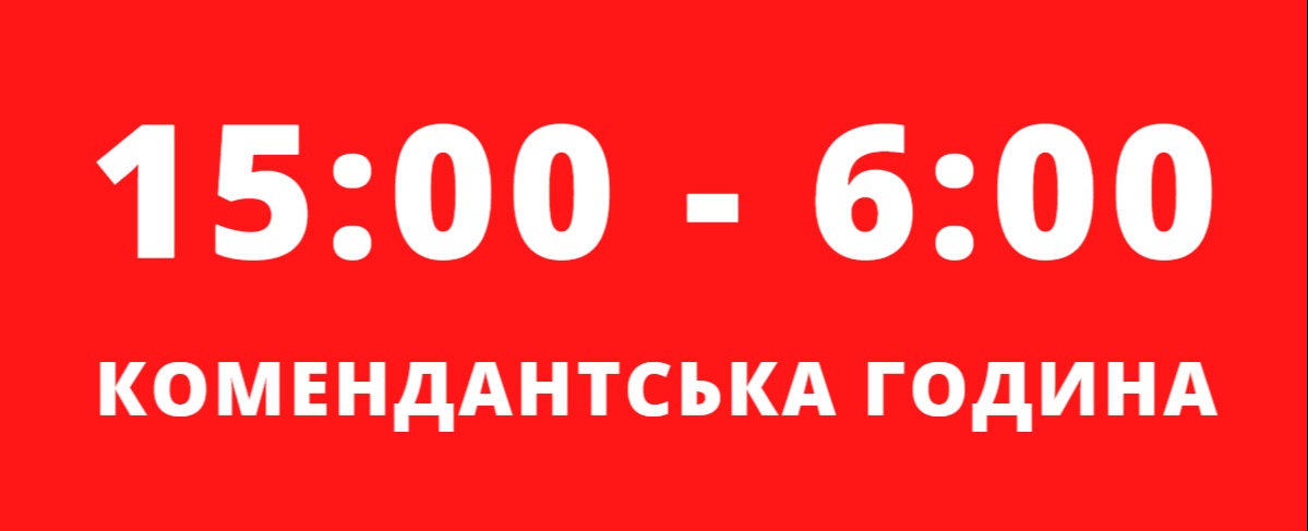 ЗГІДНО РОЗПОРЯДЖЕННЯ МІСЬКОГО ГОЛОВИ 12 БЕРЕЗНЯ КОМЕНДАНТСЬКА ГОДИНА РОЗПОЧИНАЄТЬСЯ О 15:00 І ТРИВАТИМЕ ДО 6:00 13 БЕРЕЗНЯ!