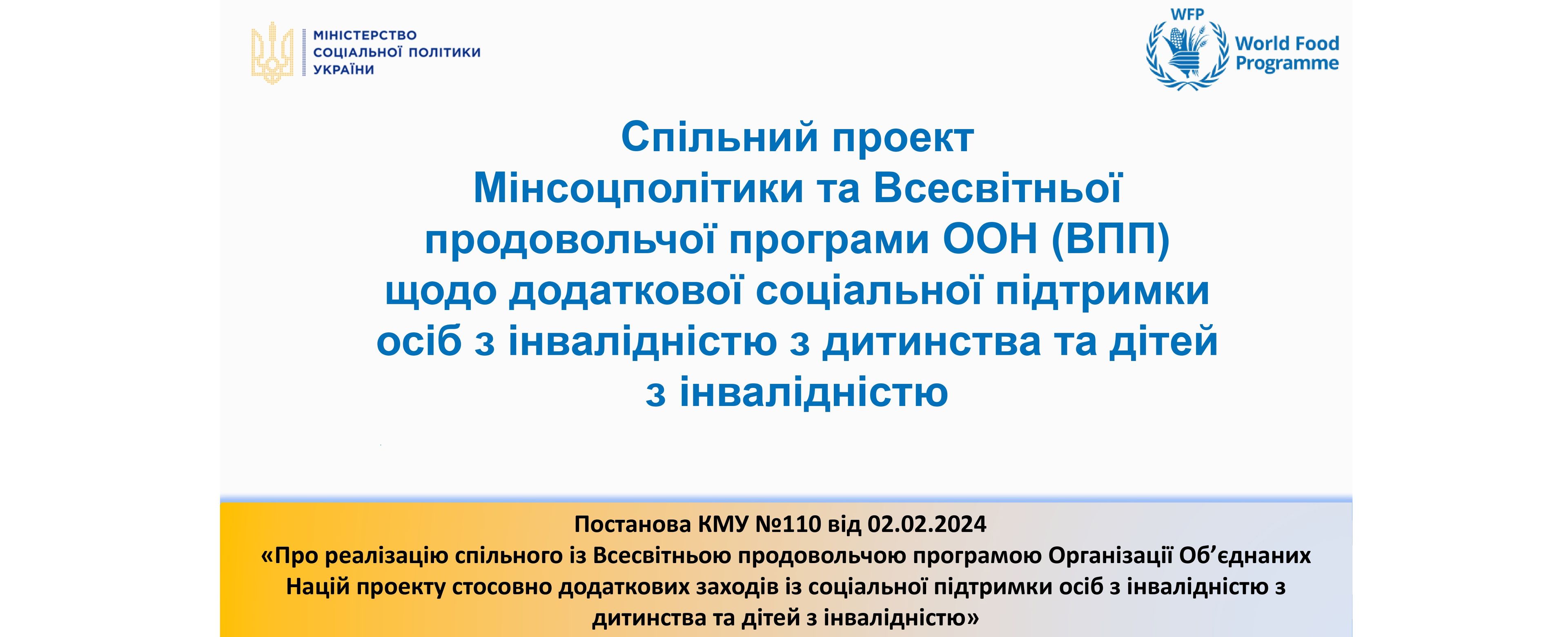 До уваги мешканців громади спільний проєкт Мінсоцполітики та Всесвітньої продовольчої програми ООН (ВПП) щодо додаткової соціальної підтримки осіб з інвалідністю з дитинства та дітей з інвалідністю