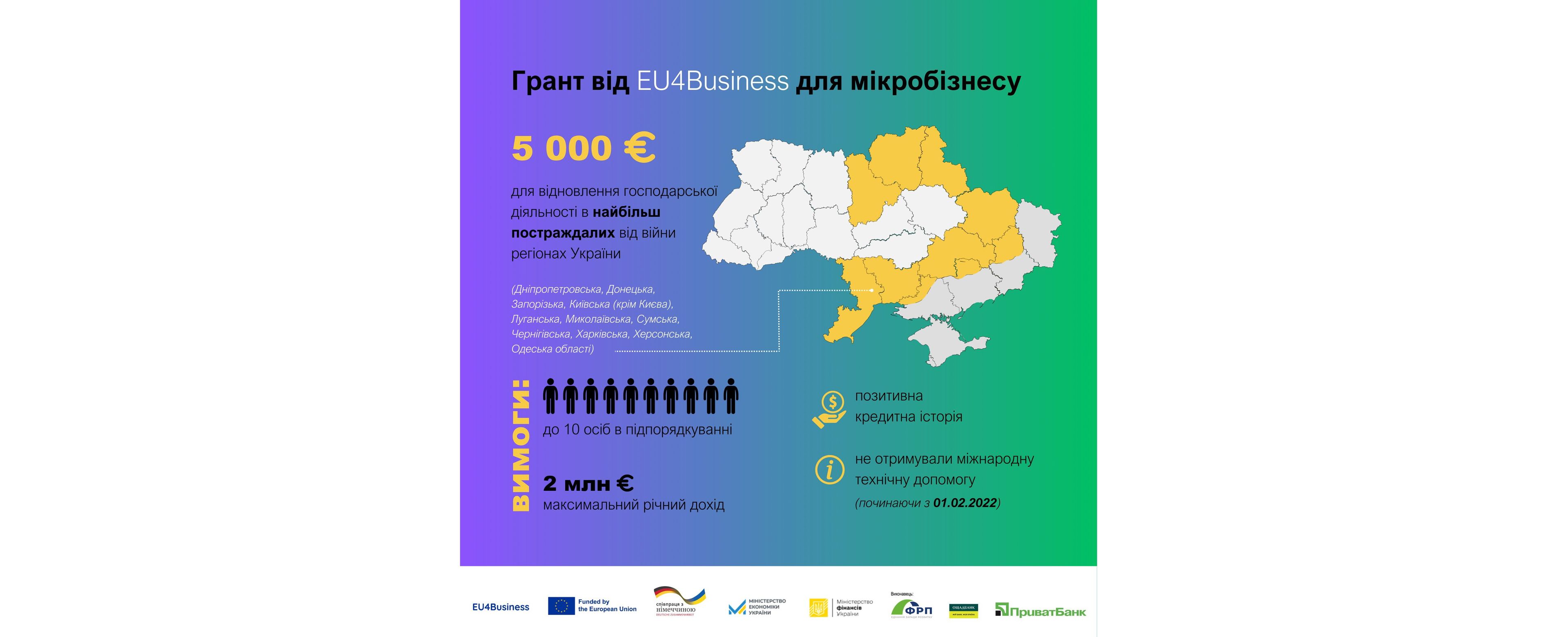 До уваги підприємців Дергачівської громади! Фонд розвитку підприємництва інформує про початок другої фази програми «Грант EU4Business для мікробізнесу»